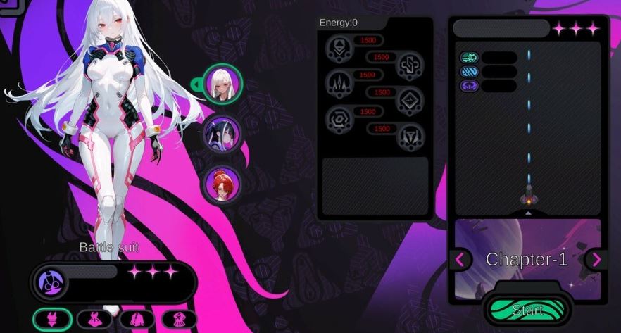 概述 一款 2D 垂直卷轴科幻射击游戏,将经典街机战斗与成人主题故事进展相结合,敌方女武神通过共鸣逐渐转化为您的专属副驾驶。”
